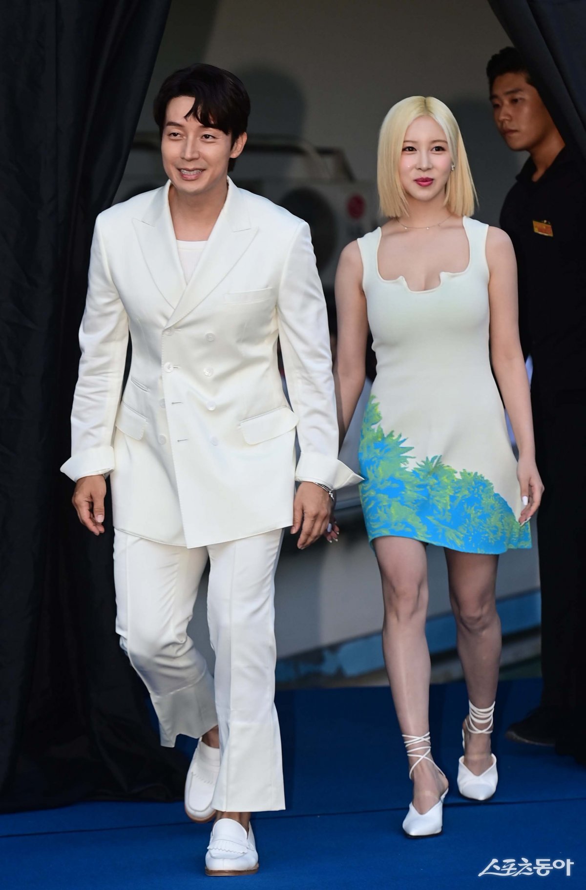 개그맨 허경환과 우주소녀 다영이 3일 서울 잠실실내체육관에서 열린 ‘펩시 썸머 페스타 2023’ 블루카펫에 오르고 있다.