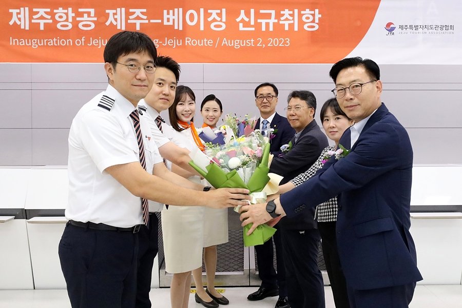 제주항공(대표이사 김이배)이 제주-베이징 노선에 주 3회 일정으로 신규 취항했다…제주항공은 2일 제주국제공항에서 제주~베이징 노선 신규 취항식을 가졌다. 7월25일부터 운항을 시작한 제주-마카오 노선에 이은 두 번째 제주발 국제 정기노선이다.