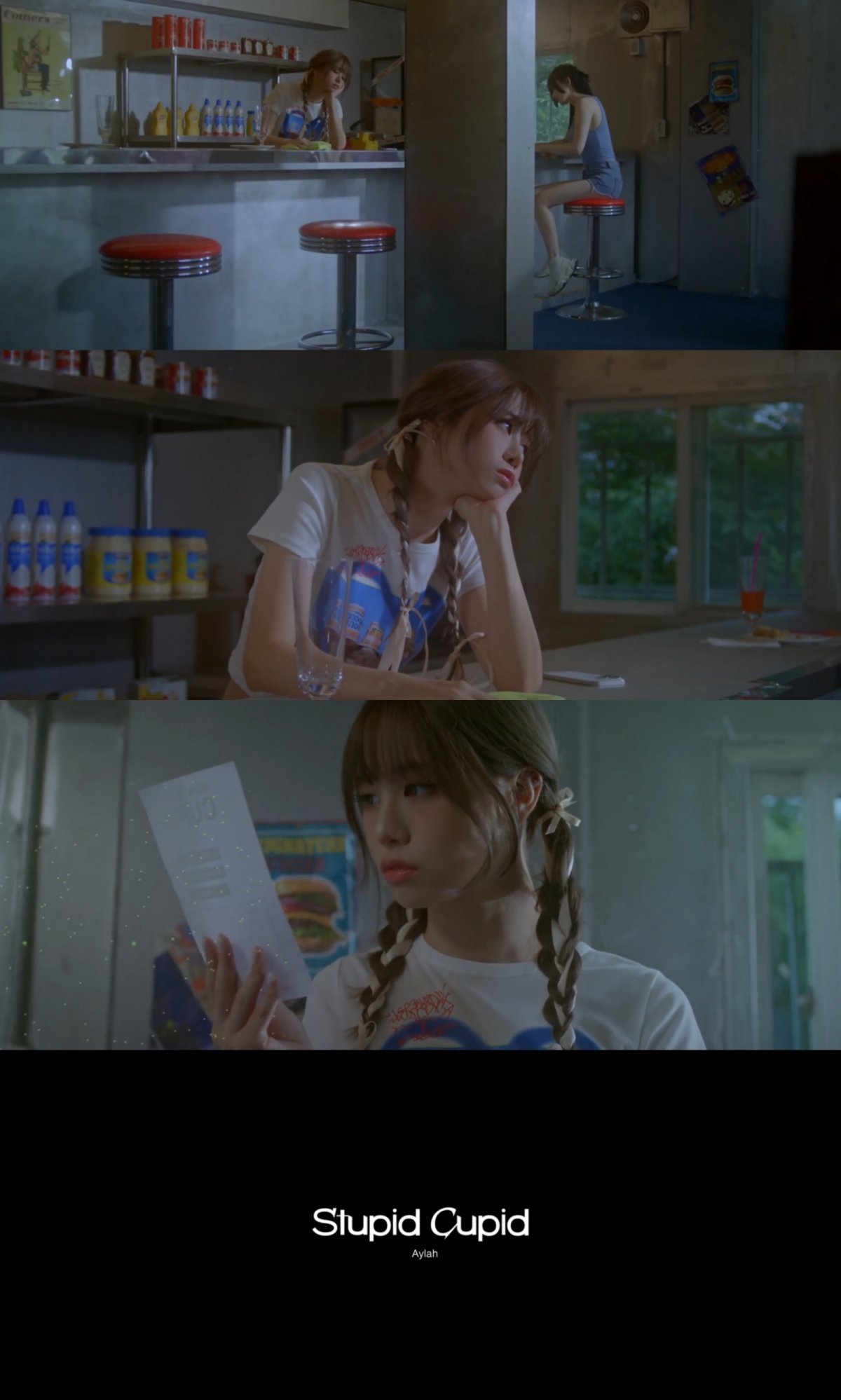 지난 5일 Aylah(아일라)의 공식 유튜브 채널에 ‘Stupid Cupid’ 발매 소식을 알리는 첫 번째 뮤직비디오 티저가 공개됐다. Aylah(아일라)는 본명인 안세은으로 등장해 짝사랑에 빠진 소녀의 모습을 표현하며 뮤직비디오 본편을 향한 궁금증을 높였다.
