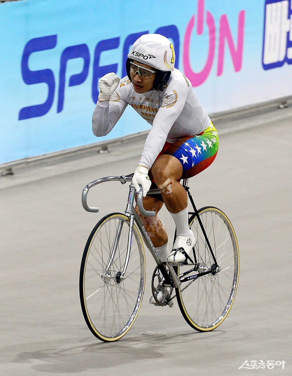 6일 경기도 광명스피돔에서 열린 ‘제13회 스포츠동아배 대상경륜’ 결승전에서 임채빈(1)이 우승을 차지한 후 환호하고 있다.