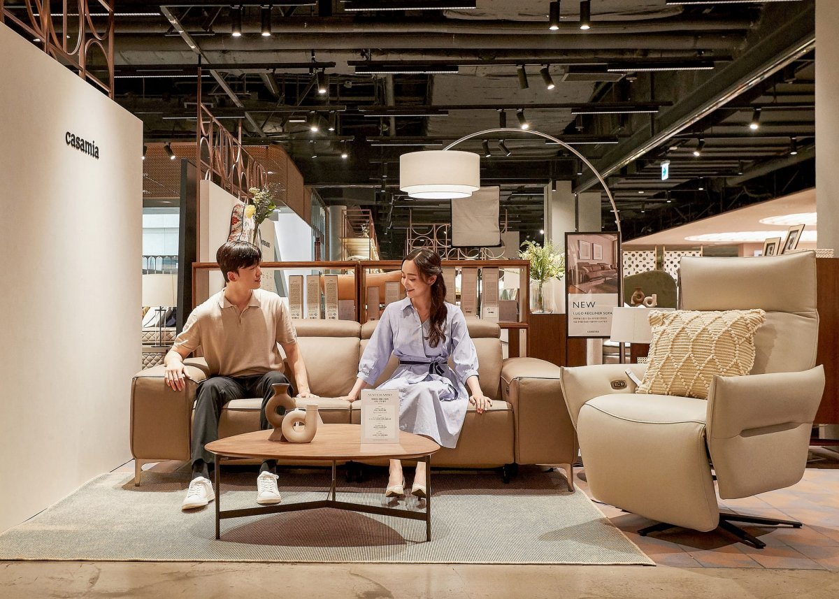 신세계까사가 가을 웨딩을 앞두고 신혼집 인테리어를 고민하는 예비 신혼부부를 위해 리클라이너 소파와 식탁을 내놓았다.