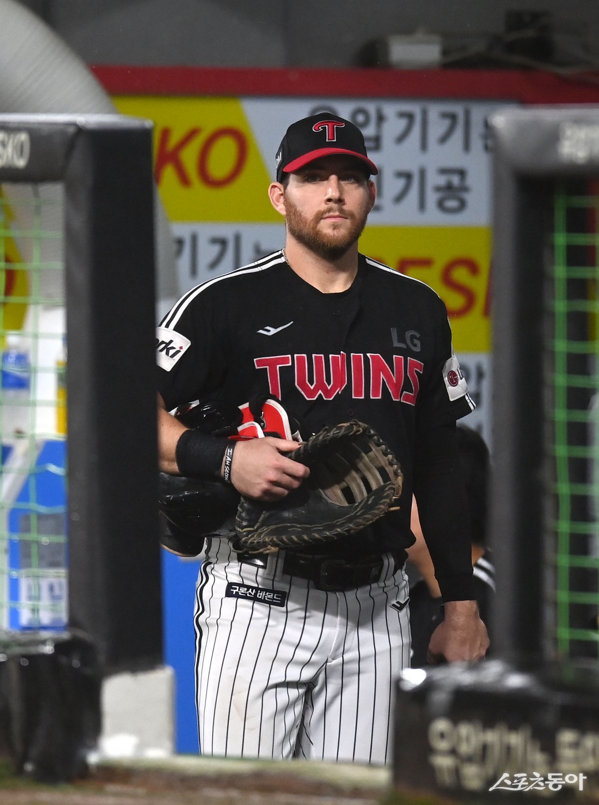 8일 광주 KIA챔피언스필드에서 ‘2023 신한은행 SOL KBO리그’ LG 트윈스와 KIA 타이거즈 경기가 2회말 우천으로 노게임 선언됐다. LG 문보경이 더그아웃을 빠져나가고 있다.