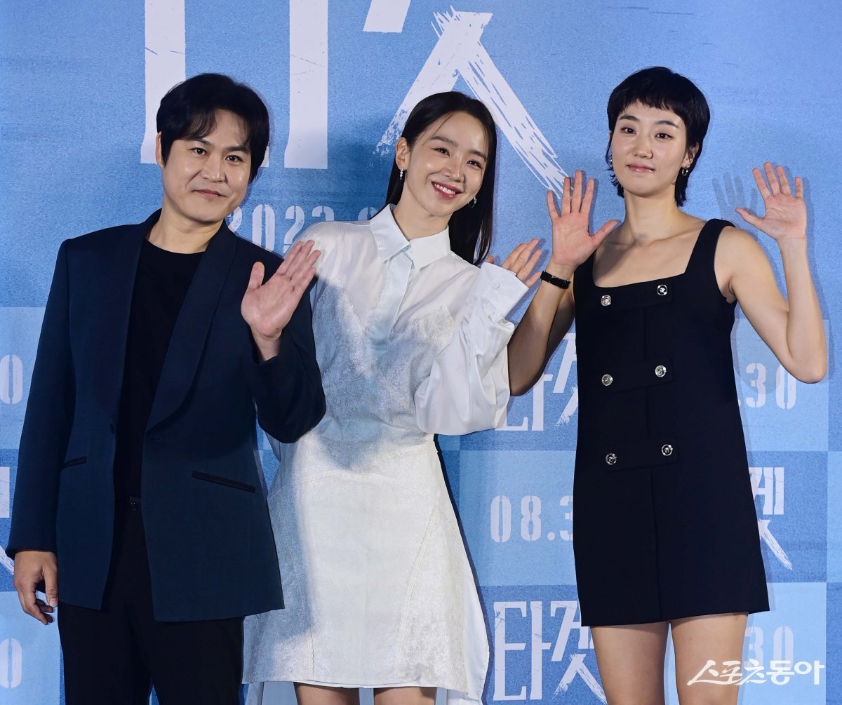 배우 김성균, 신혜선, 이주영이 9일 서울 성동구 성수동 메가박스 성수점에서 열린 영화 ‘타겟’ 제작보고회에서 포즈를 취하고 있다.