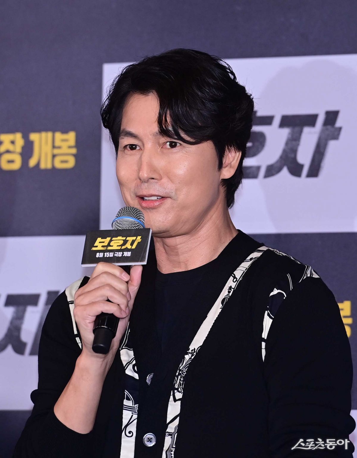 감독 겸 배우 정우성이 9일 서울 광진구 자양동 롯데시네마 건대입구점에서 열린 영화 ‘보호자’ 언론시사회에서 인사말을 하고 있다.
