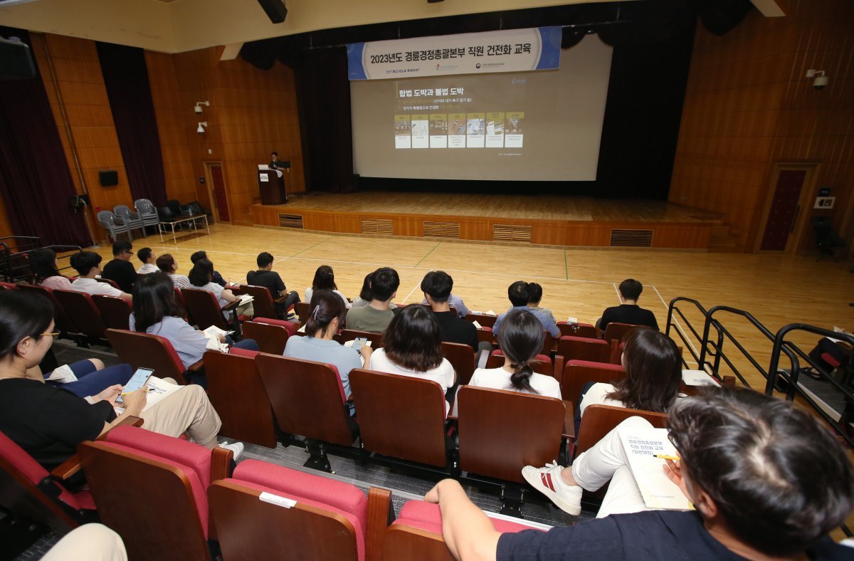 국민체육진흥공단 경륜경정총괄본부는 9월 5일까지 9회에 걸쳐 ‘2023년 직원 건전화 교육’을 진행한다. 경륜경정총괄본부에 근무하는 직원들의 도박중독, 책임도박에 대한 인식 강화와 경륜경정사업의 건전레저 문화 정착을 유도하기 위해 시행하는 프로그램으로 600여 명의 본부 전 직원을 대상으로 매년 진행하고 있다. 올해 교육은 도박중독 예방과 직무 전문성 강화라는 주제로 한국도박문제예방치유원 소속 전문가 및 전문 교육기관의 강사를 초빙해 진행하고 있다.