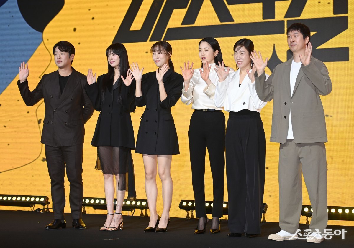 배우 안재홍, 나나, 이한별, 고현정, 염혜란, 김용훈 감독이 16일 서울 동대문구 JW메리어트 동대문에서 열린 넷플릭스 드라마 ‘마스크걸’ 제작발표회에서 포토타임을 갖고 있다.