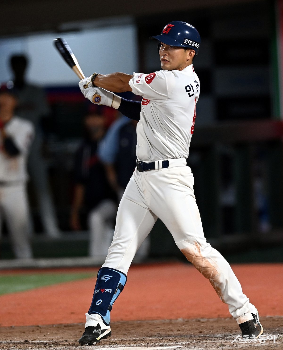 16일 부산 사직야구장에서 ‘2023 신한은행 SOL KBO리그’ 롯데 자이언츠와 SSG 랜더스 경기가 열렸다. 7회말 무사 1루에서 롯데 안권수가 1타점 2루타를 날리고 있다.