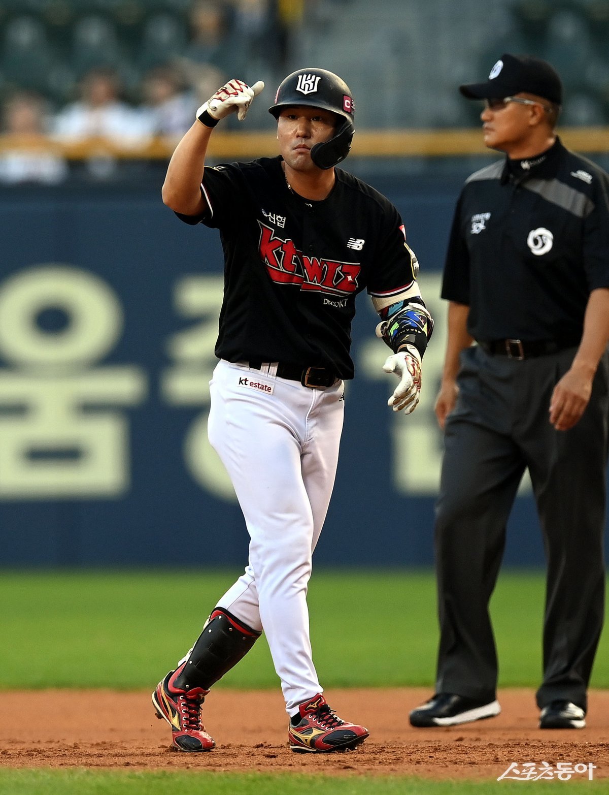 17일 서울 잠실야구장에서 ‘2023 신한은행 SOL KBO리그’ 두산 베어스와 kt 위즈의 경기가 열렸다. 1회초 2사 2루에서 kt 김상수가 적시타를 날린 후 세리머니를 펼치고 있다.