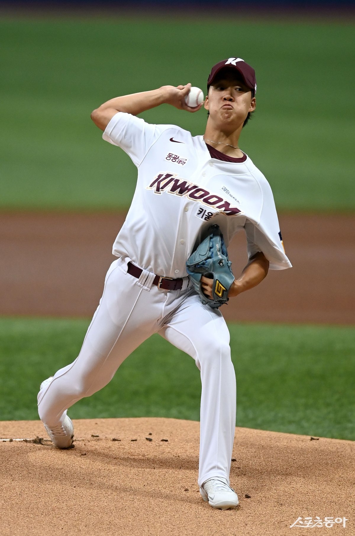 20일 서울 고척스카이돔에서 ‘2023 신한은행 SOL KBO리그’ 롯데 자이언츠와 키움 히어로즈 경기가 열렸다. 선발 투수로 등판한 키움 오상원이 역투하고 있다.