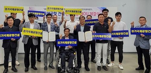 경기국제공항유치 수원시민협의회가 지난 18일 수원산업단지관리공단 및 시 주민자치협의회와 경기국제공항 건설을 위한 상호협력 협약(MOU)을 체결했다.