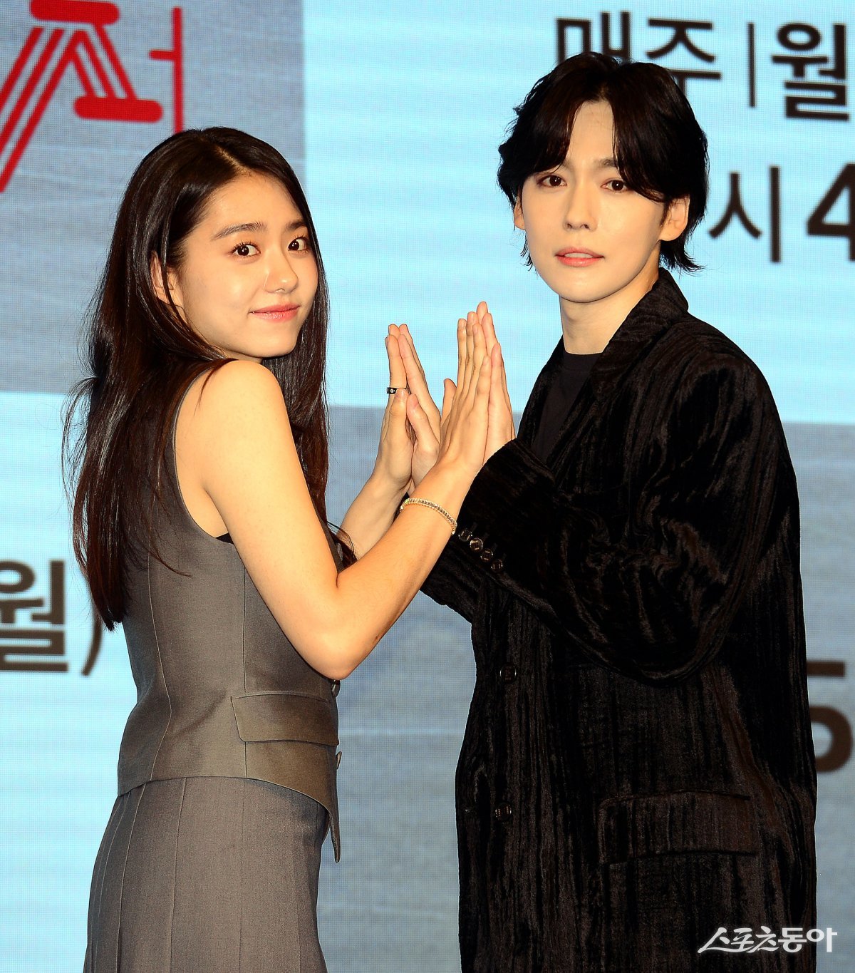 21일 서울 구로구 더 세인트에서 열린 KBS 2TV 월화드라마 ‘순정복서’ 제작발표회에 참석한 김진우와 김소혜가 카메라를 향해 포즈를 취하고 있다.