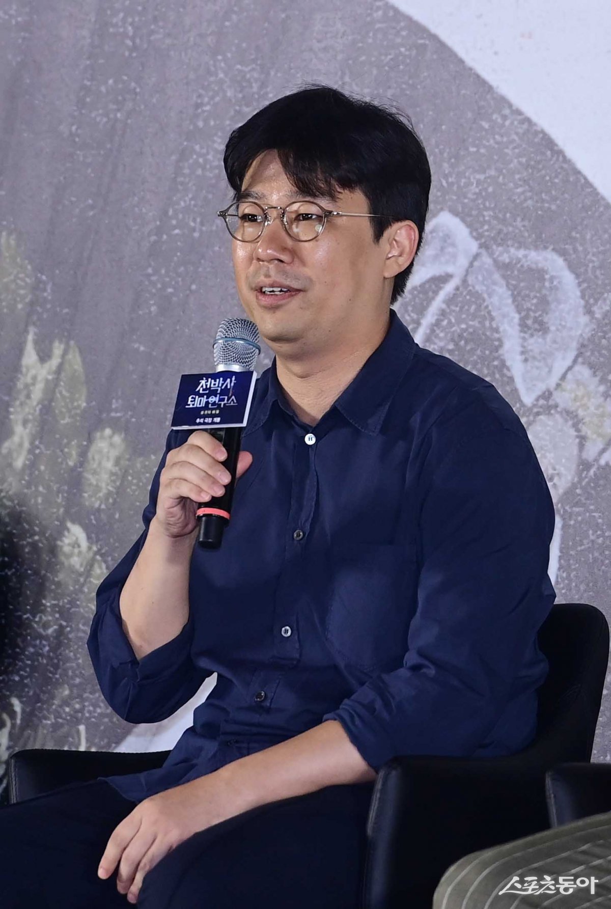감독 김성식이 22일 서울 용산구 CGV 용산아이파크몰점에서 열린 영화 ‘천박사 퇴마연구소: 설경의 비밀’ 제작보고회에서 인사말을 하고 있다.