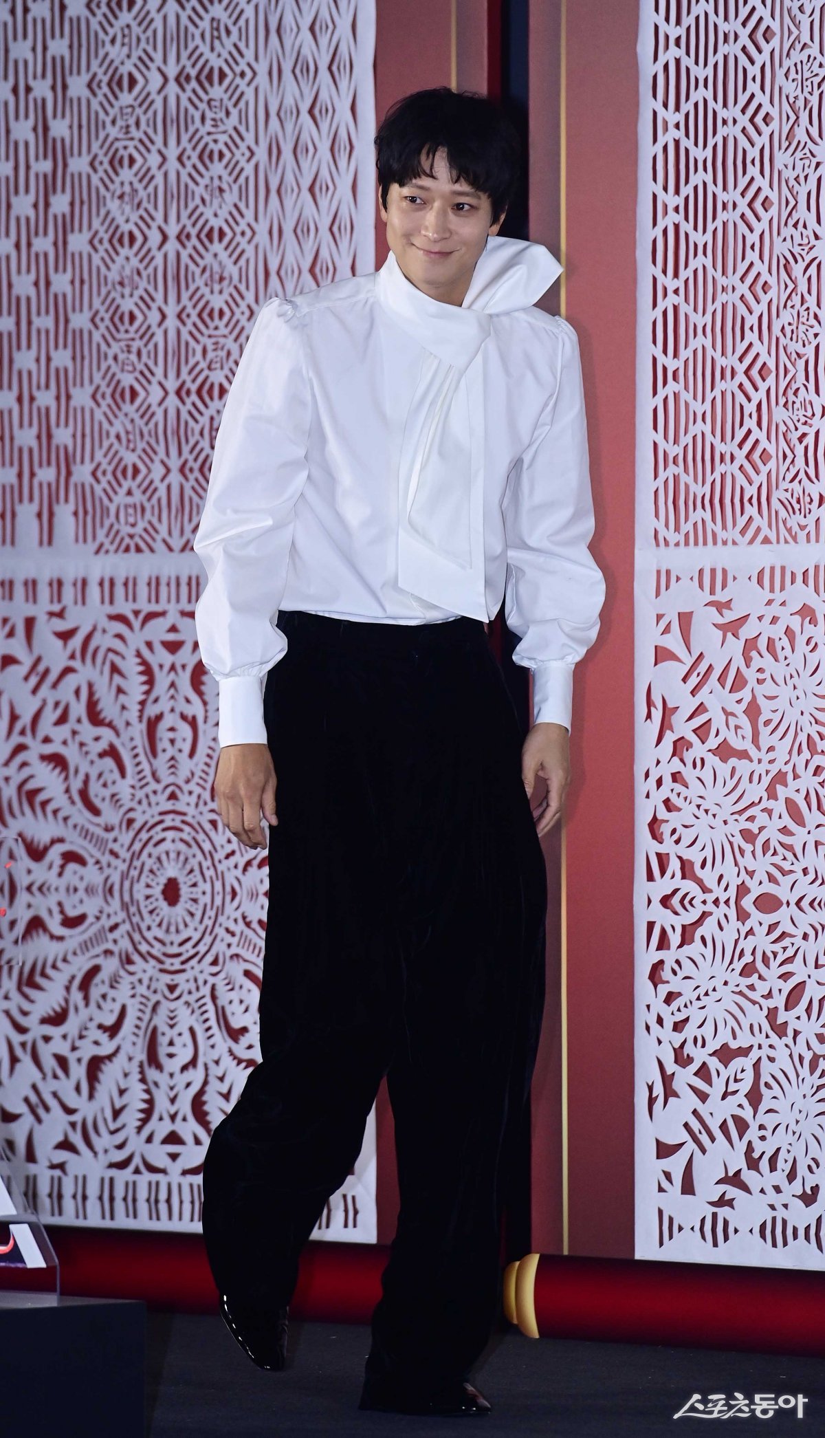 배우 강동원이 22일 서울 용산구 CGV 용산아이파크몰점에서 열린 영화 ‘천박사 퇴마연구소: 설경의 비밀’ 제작보고회 무대에 오르고 있다.