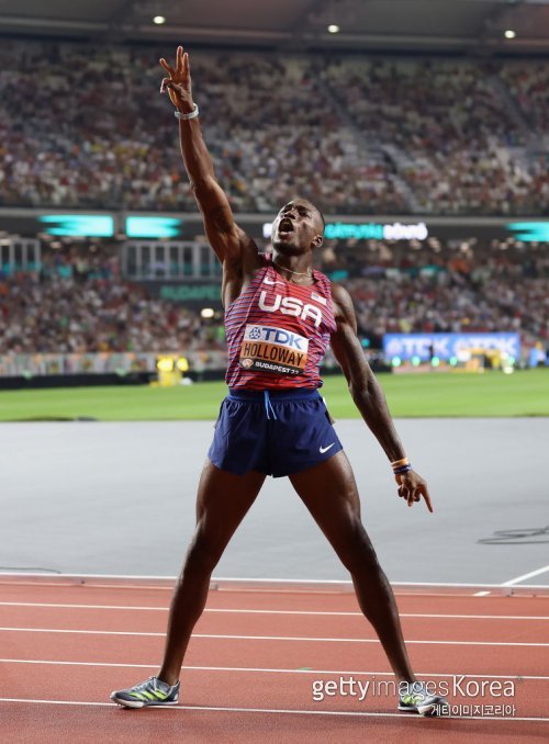 홀러웨이는 22일(한국시간) 헝가리 부다페스트 국립경기장에서 벌어진 2023세계육상선수권대회 남자 110m 허들 결선에서 12초96의 기록으로 우승했다. 올 시즌 개인최고기록 수립과 동시에 2020도쿄올림픽 은메달(13초09) 획득 당시 자신을 꺾었던 핸슬 파쉬먼트(자메이카)에게 설욕도 했다. 파쉬먼트도 이날 올 시즌 개인최고기록(13초07)을 세우고도 은메달에 그쳤다.