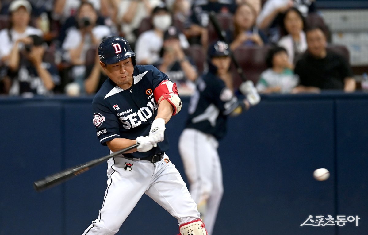 22일 서울 고척스카이돔에서 ‘2023 신한은행 SOL KBO리그’ 두산 베어스와 키움 히어로즈 경기가 열렸다. 8회초 1사 두산 대타 양의지가 좌월 솔로 홈런을 날리고 있다.