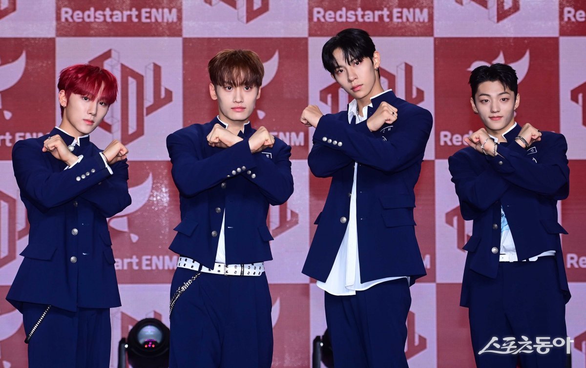 그룹 티아이오티(TIOT)가 23일 서울 강남구 청담동 일지아트홀에서 열린 프리 데뷔 앨범 ‘Frame the Blueprint: Prelude to Possibilities‘ 발매 프레스 쇼케이스에서 포즈를 취하고 있다.