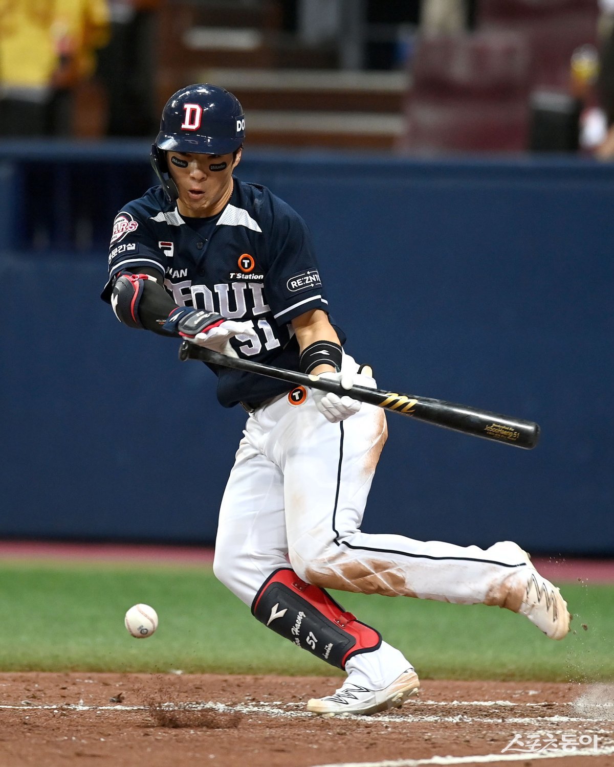 23일 서울 고척스카이돔에서 ‘2023 신한은행 SOL KBO리그’ 두산 베어스와 키움 히어로즈 경기가 열렸다. 5회초 무사 두산 조수행이 기습 번트 안타를 성공시키고 있다.
