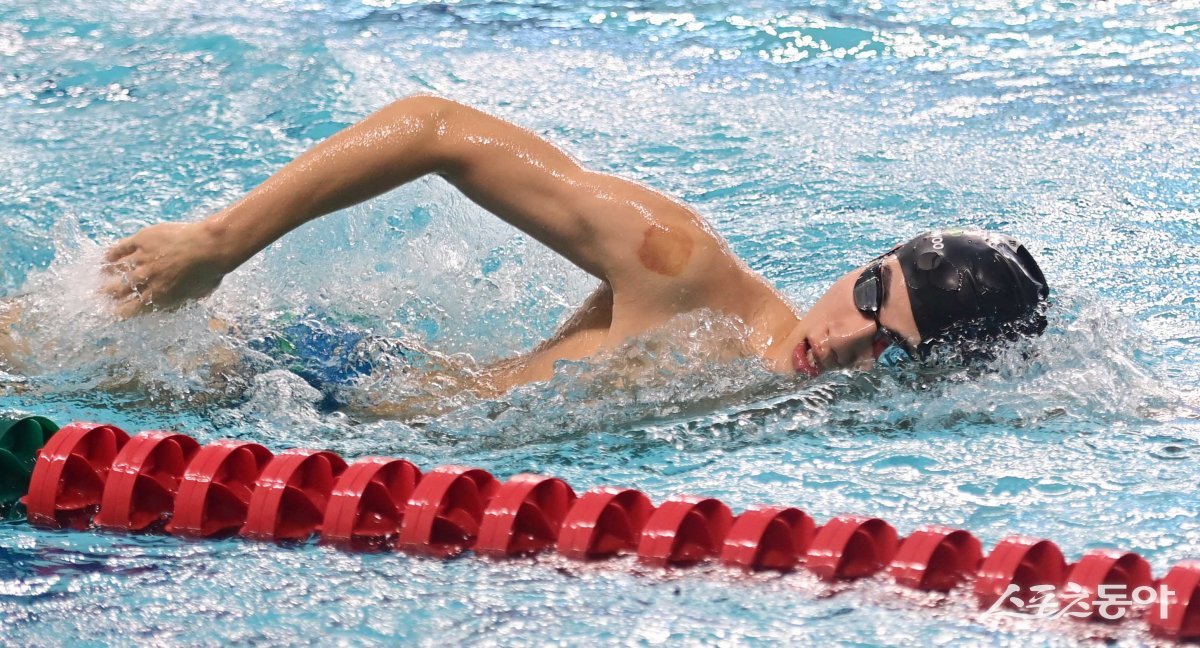 한국수영대표팀 황선우가 24일 충북 진천국가대표선수촌에서 열린 ‘2022 항저우아시아경기대회 D-30 미디어데이’에서 훈련을 하고 있다.