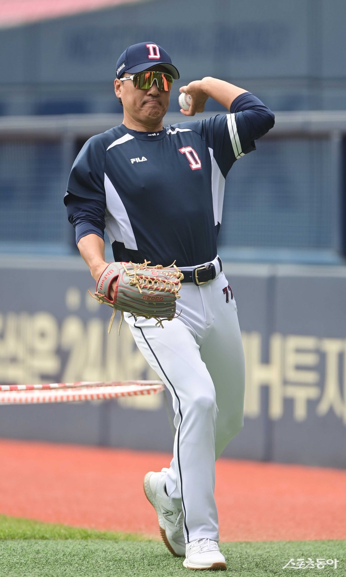 27일 서울 잠실야구장에서 열린 ‘2023 신한은행 SOL KBO리그’ 두산 베어스와 SSG 랜더스의 경기에 앞서 두산 이승엽 감독이 캐치볼을 하고 있다.