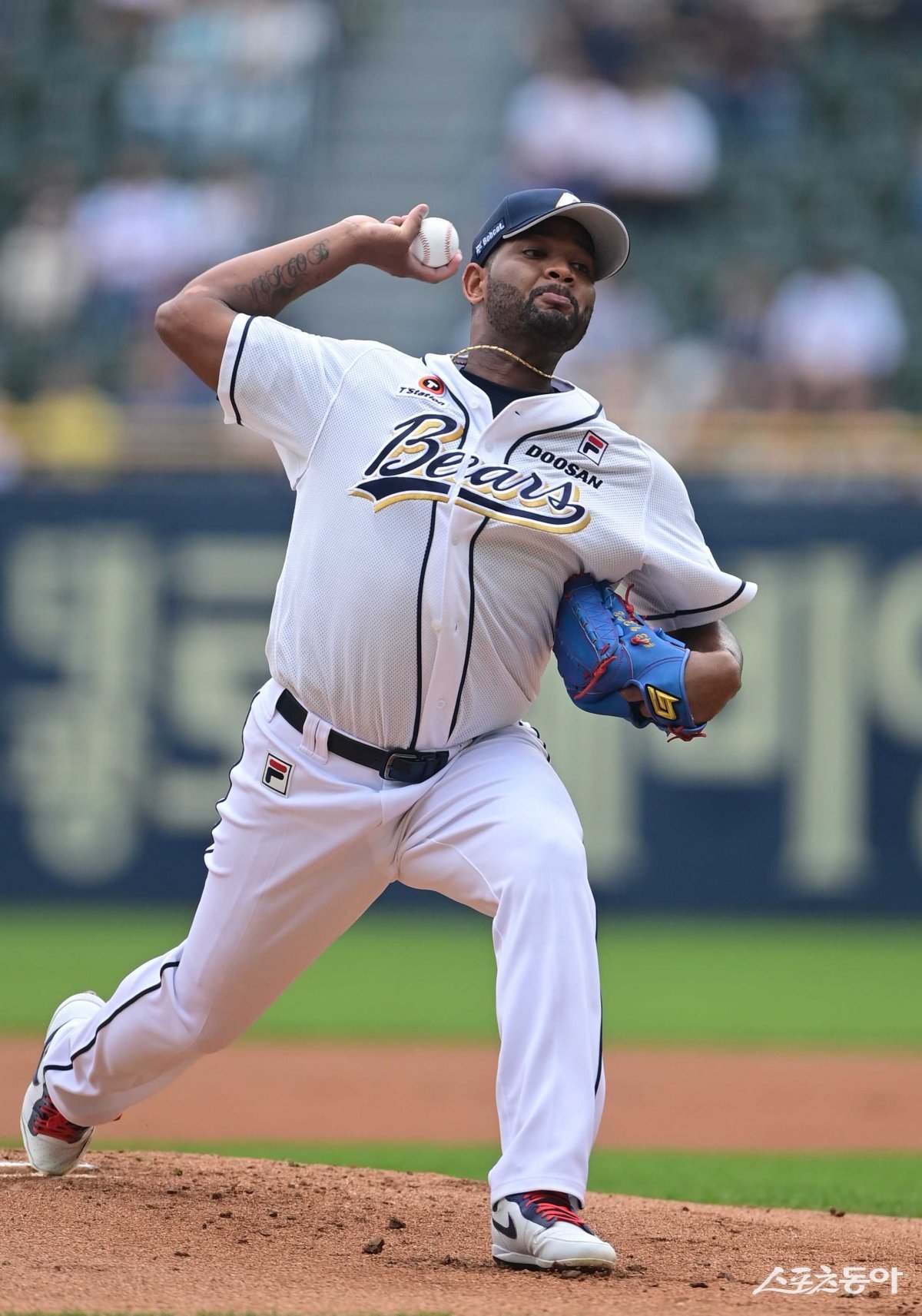 27일 서울 잠실야구장에서 열린 ‘2023 신한은행 SOL KBO리그’ 두산 베어스와 SSG 랜더스의 경기에서 선발 투수로 마운드에 오른 두산 알칸타라가 역투하고 있다.