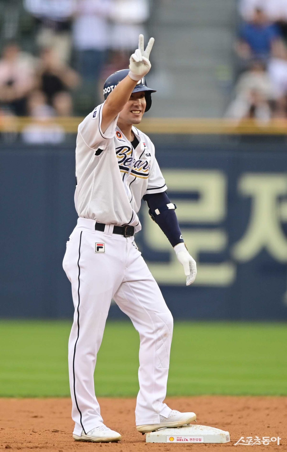 27일 서울 잠실야구장에서 열린 ‘2023 신한은행 SOL KBO리그’ 두산 베어스와 SSG 랜더스의 경기에서 3회말 무사 1루 두산 김재호가 우전 2루타로 역대 89번째 200 2루타를 달성하고 있다.