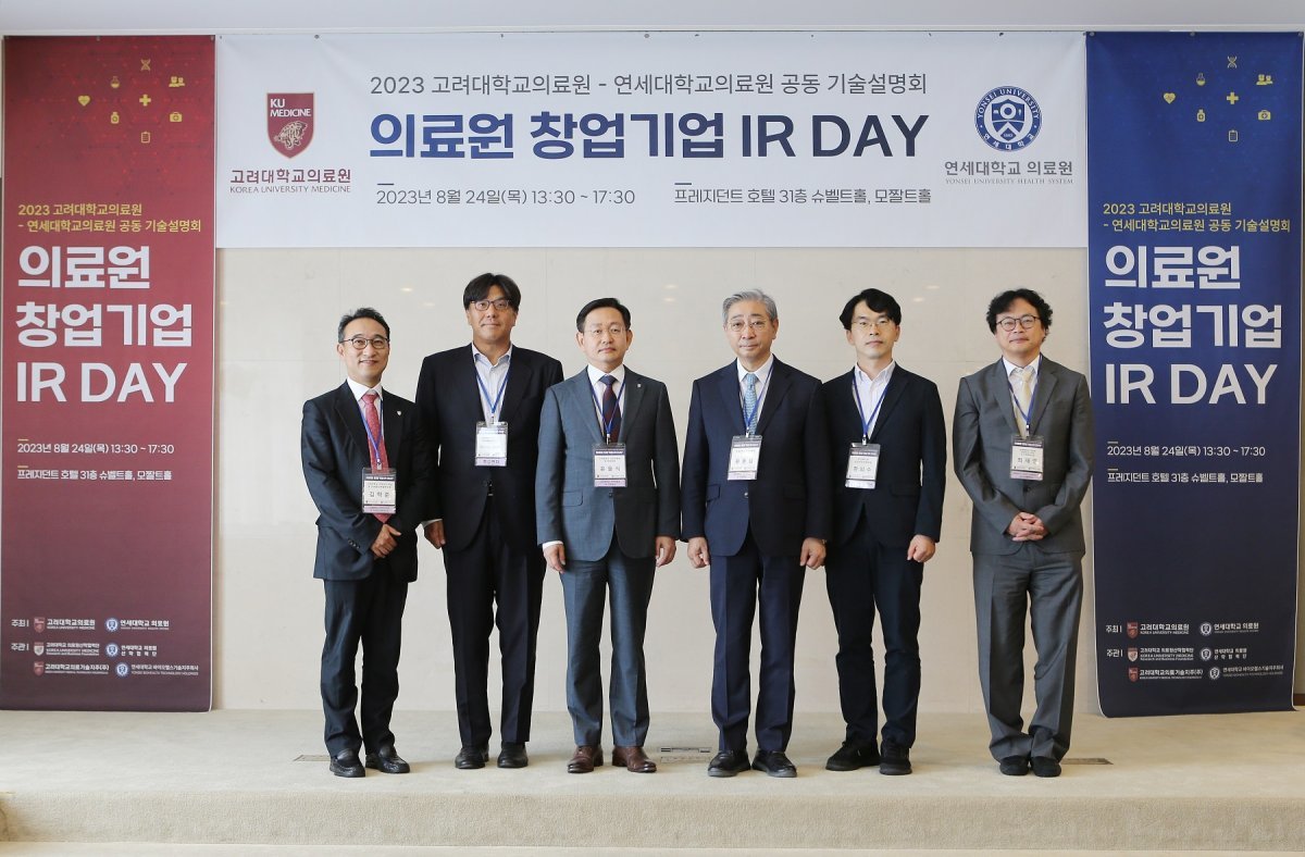 고려대의료원(의무부총장 겸 의료원장 윤을식)은 연세대학교의료원과 24일 프레지던트호텔에서 ‘2023 고려대의료원-연세대의료원 공동 기술설명회’를 진행했다.공동 기술설명회는 윤을식 고려대 의무부총장, 윤동섭 연세대 의무부총장, 김학준 고려대 의학연구처장 겸 의료원산학협력단장, 최재영 연세대 의과학연구처장 겸 산학협력단장 등이 참석했다.