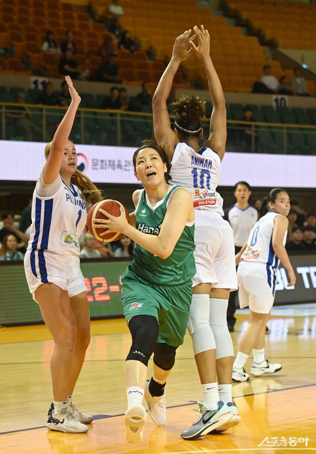 28일 청주체유관에서 열린 2023 박신자컵 국제대회 필리핀 국가대표팀과 하나원큐 경기에서 하나원큐 양인영이 필리핀의 수비를 뚫고 골밑을 공격하고 있다.