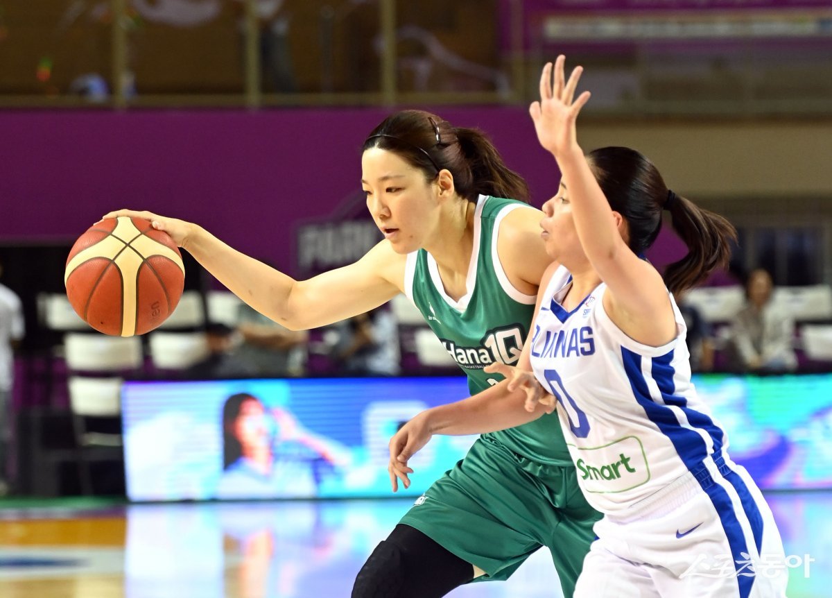 28일 청주체유관에서 열린 2023 박신자컵 국제대회 필리핀 국가대표팀과 하나원큐 경기에서 하나원큐 양인영이 필리핀 수비를 뚫고 골밑을 공격하고 있다.