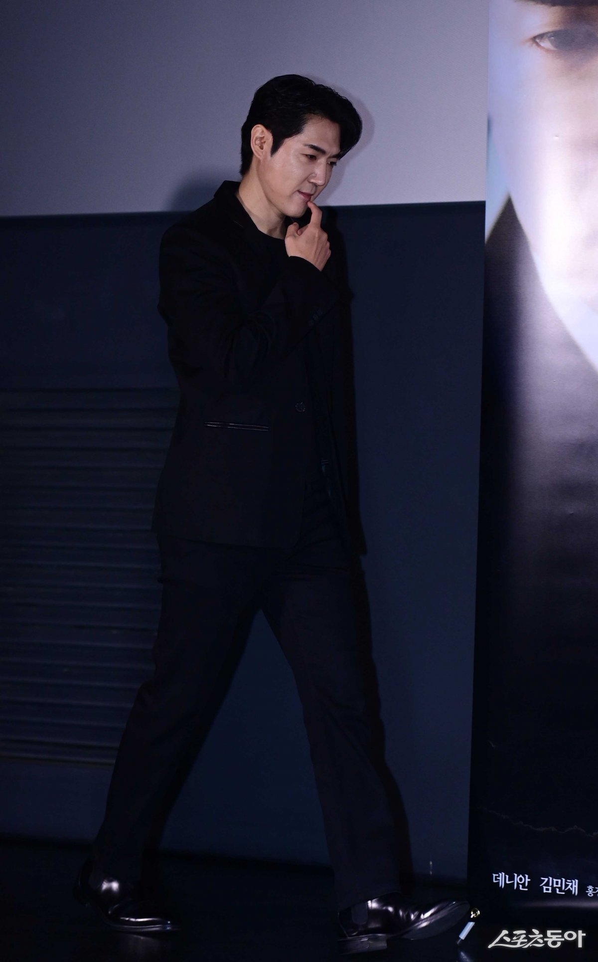 가수 겸 배우 데니안이 28일 서울 광진구 자양동 롯데시네마 건대입구점에서 열린 영화 ‘차박- 살인과 낭만의 밤’ 언론시사회 무대에 오르고 있다.