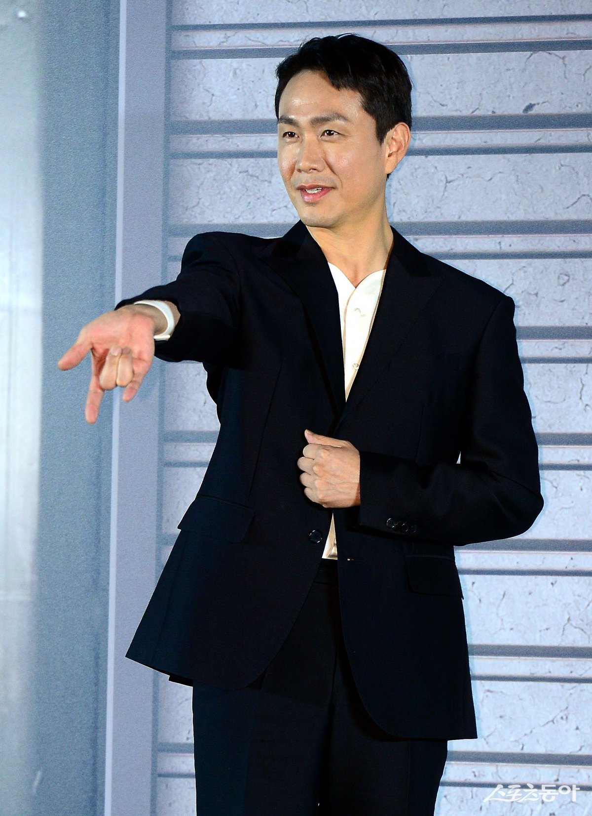 29일 서울 용산구 CGV 용산아이파크몰에서 열린 영화 ‘거미집’ 제작보고회에 참석한 배우 오정세가 카메라를 향해 포즈를 취하고 있다.