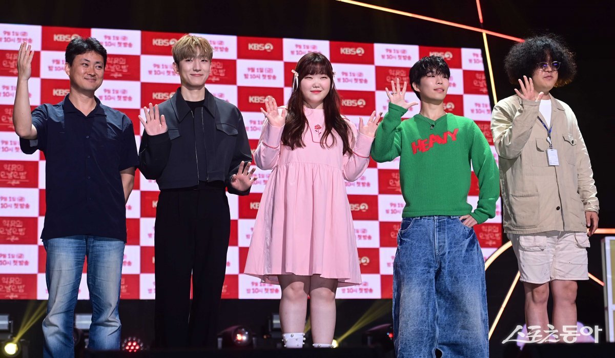 PD 박석형, 멜로망스 정동환, 악뮤 이수현, 이찬혁, PD 이창수가 29일 서울 영등포구 여의도동 KBS신관 아트홀에서 열린 KBS 2TV 뮤직 토크쇼 ‘더 시즌즈-악뮤의 오날오밤’ 제작발표회에서 포즈를 취하고 있다.