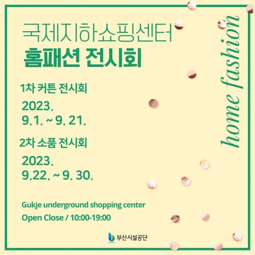 국제지하도상가 상인회가 주최하고 부산시설공단이 후원하는 이번 홈패션 전시회는 두 종류로 나뉘어 개최된다.