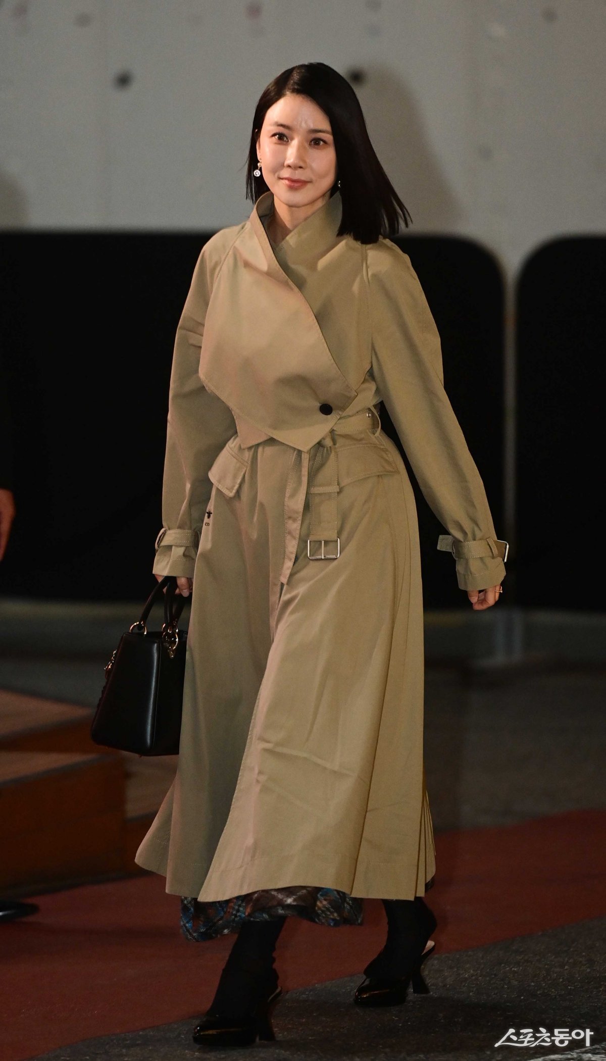 배우 이보영이 1일 서울 성동구 성수동 컨셉 스토어에서 열린 한 향수, 뷰티 패션 브랜드의 전시회 포토월에 오르고 있다.