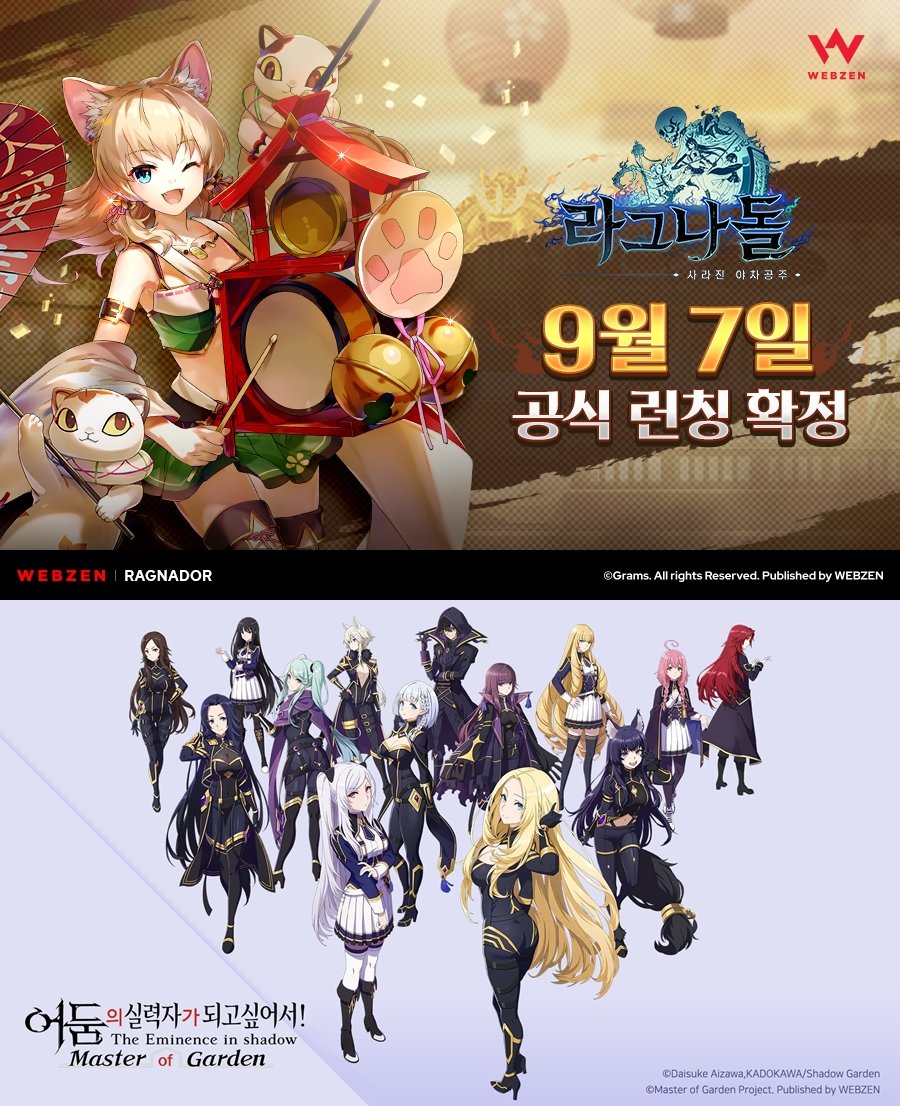 웹젠이 7일 정식 출시하는 ‘라그나돌: 사라진 야차공주’(위)와 하반기 선보일 예정인 ‘어둠의 실력자가 되고 싶어서!’. 사진제공|웹젠