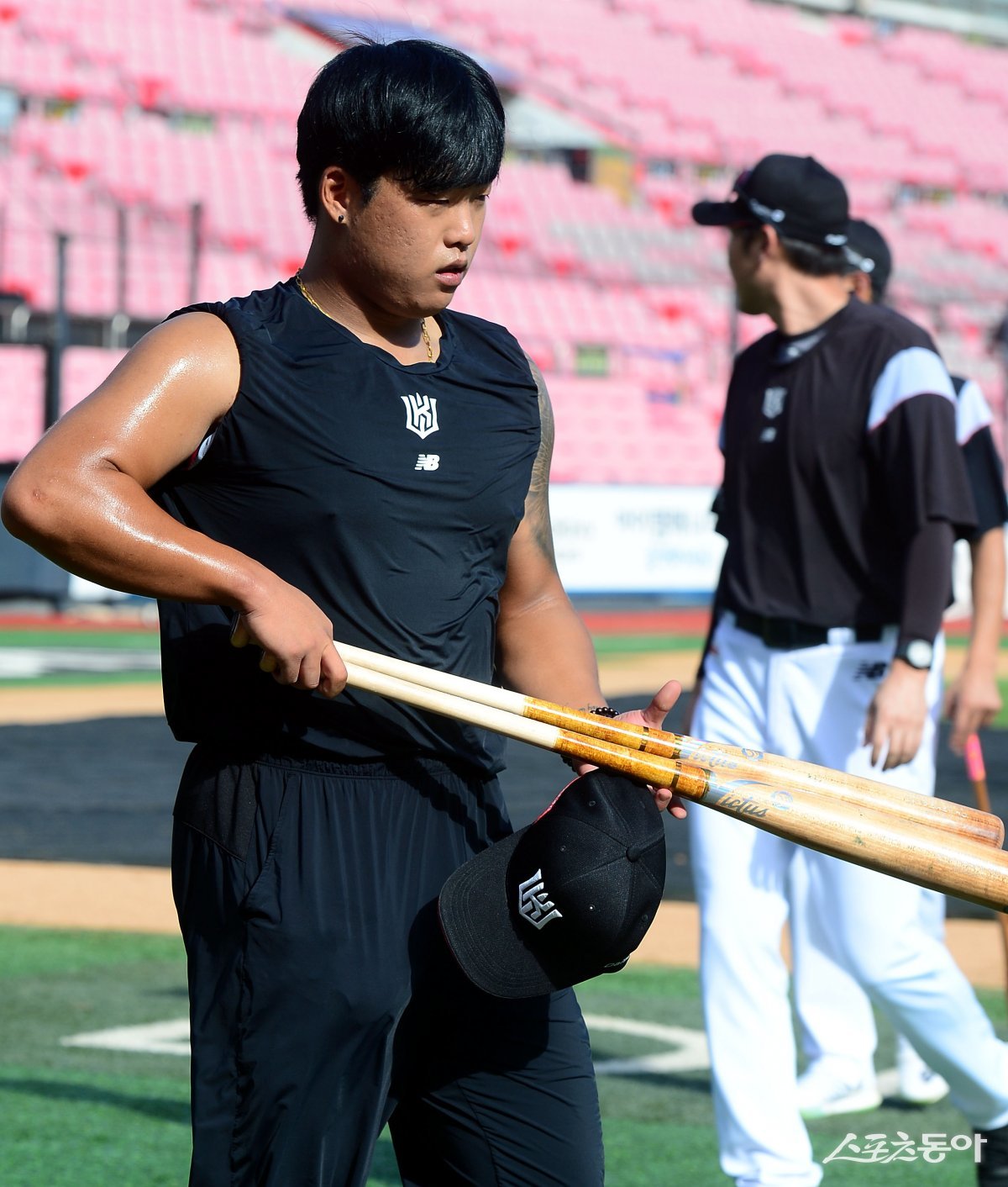 5일 경기도 수원 kt위즈파크에서 ‘2023 신한은행 SOL KBO리그’ kt 위즈와 LG 트윈스의 경기가 열린다. 경기 전 1군에 복귀한 kt 강백호가 훈련을 마치고 더그아웃으로 향하고 있다.