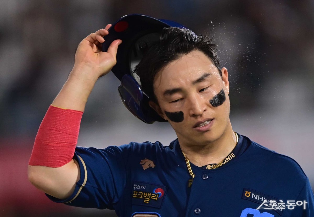 12일 부산 사직야구장에서 열린 ‘2023 신한은행 SOL KBO리그’ 롯데 자이언츠와 NC 다이노스의 경기에서 6회초 2사 1, 2루 NC의 뜬공으로 아웃을 당하자 2루주자 손아섭이 아쉬워하고 있다.