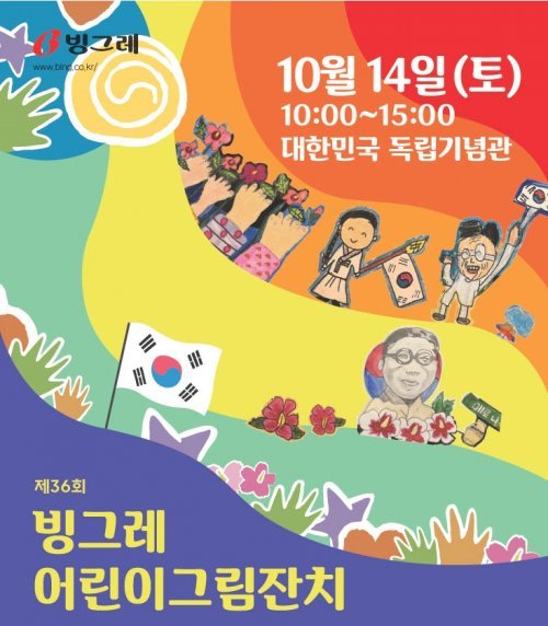 빙그레가 10월 14일 충남 천안 독립기념관에서 ‘제36회 빙그레 어린이 그림잔치’를 연다. 독립을 주제로 어린이가 창의적인 발상을 자유롭게 펼칠 수 있는 장을 마련하고자 기획했다. 유치부, 초등 저학년부, 초등 고학년부 등으로 나눠 진행한다. 전문 심사위원이 심사를 진행하고, 선정된 우수 작품은 온라인 홈페이지에 전시한다. 폐플라스틱을 재활용한 원단으로 제작한 가방 굿즈 제공 및 플로깅 캠페인 등 친환경 캠페인도 마련했다.