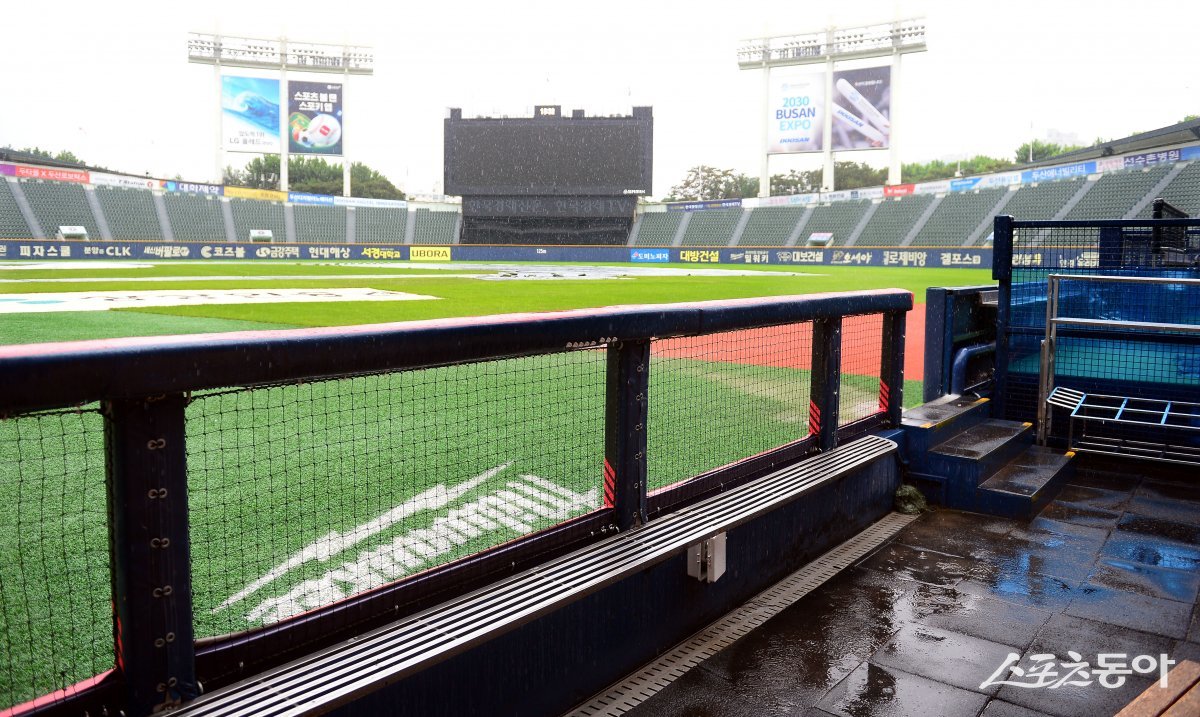 13일 서울 잠실야구장에서 열리 ‘2023 신한은행 SOL KBO리그’ SSG 랜더스와 두산 베어스 경기가 우천으로 취소됐다.