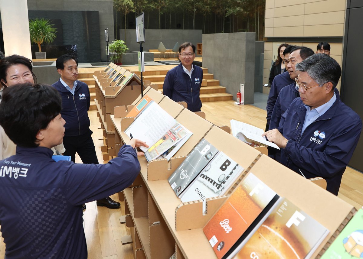 특히 이번 전시에서 눈 여겨 볼 만 한 것은 책을 전시한 친환경 종이 설치대다. 지난 2022년 사외보 ‘향토와 문화’ 특별 전시회 전시 당시 사용한 것을 재활용 한 것으로, 흔히 전시 구조물에 사용되던 아크릴, 철재 구조물 등의 재료 대신 재활용이 가능한 종이를 이용해 친환경 경영 행보를 행한 바 있으며 전시 종료 후 별도 보관하다 본 책방에 재활용해 친환경 활동에 발을 맞췄다.