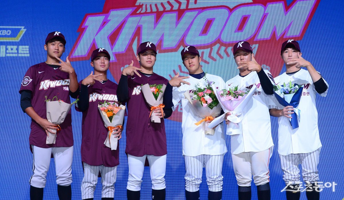 14일 서울 중구 웨스틴조선호텔에서 열린 ‘2024 KBO 신인 드래프트’에서 키움에 지명된 선수들이 기념촬영을 하고 있다.