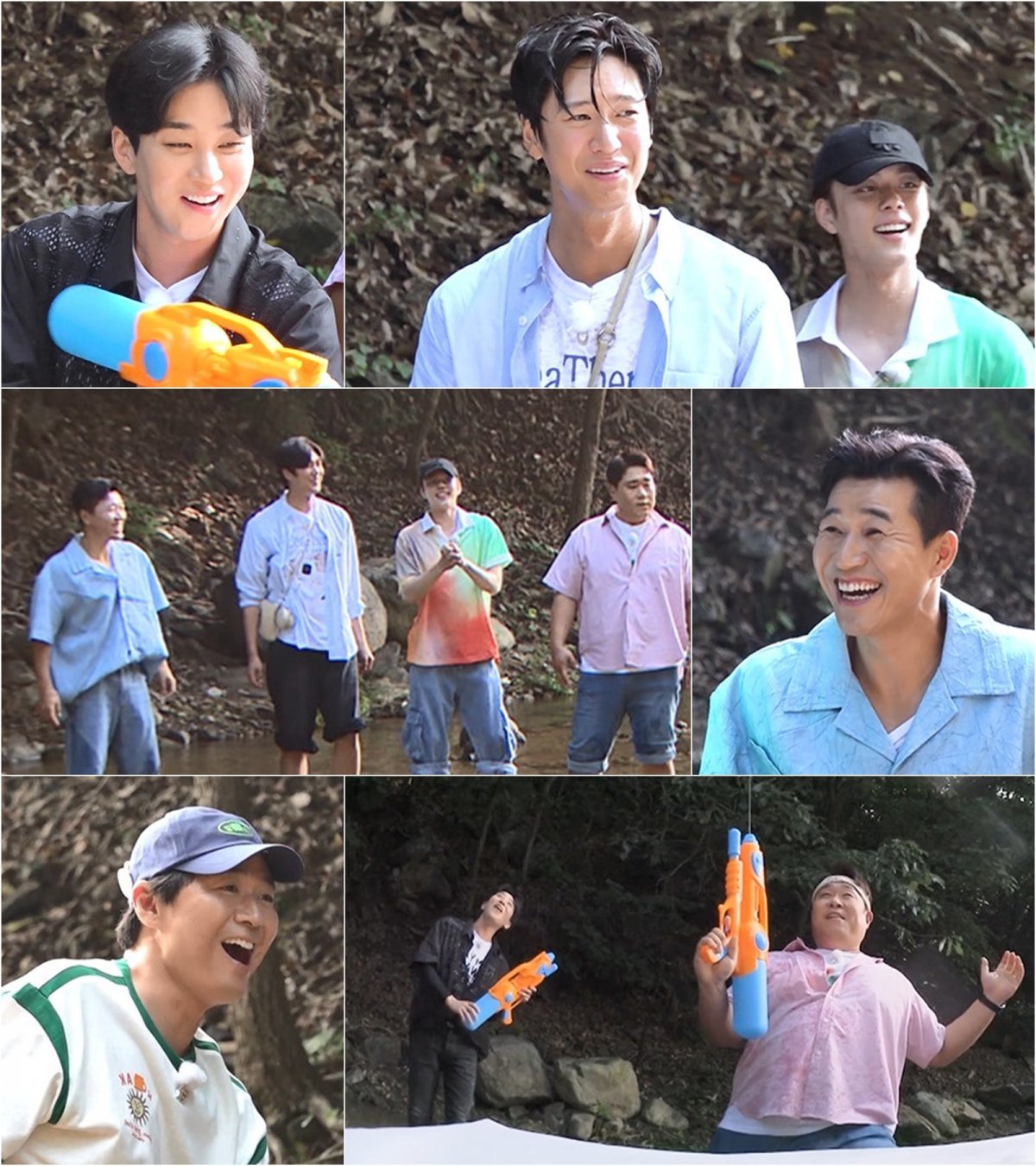 개울에서 무아지경으로 놀던 와중 갑작스레 전달 받은 ‘홀리데이’ 미션. 이들 앞에는 동심을 자극하는 물총이 놓여있다. 낌새를 눈치 챈 김종민은 그늘에 있다가 깊은 물웅덩이로 자리를 옮기는 등 고인물 다운 면모를 드러내 웃음을 유발한다. 이에 질세라 개울에서 멤버들은 각각 필사의 미션을 펼친다.