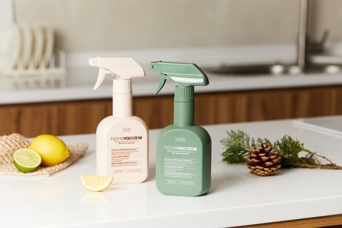 애경산업이 ‘홈백신 항균 지속 세정제’를 내놓았다. 한 번의 세정으로 오랜 시간 깨끗함을 유지해 주는 가정용 세정제다. 욕실의 물때 제거에 도움을 주는 욕실용과 주방의 기름때 제거에 효과적인 주방용 등 2종으로 구성했다. 손이 닿기 어려운 곳까지 분사할 수 있는 트리거 타입으로 설계했다. 고급스러운 디자인을 적용해 인테리어 효과를 높였다.