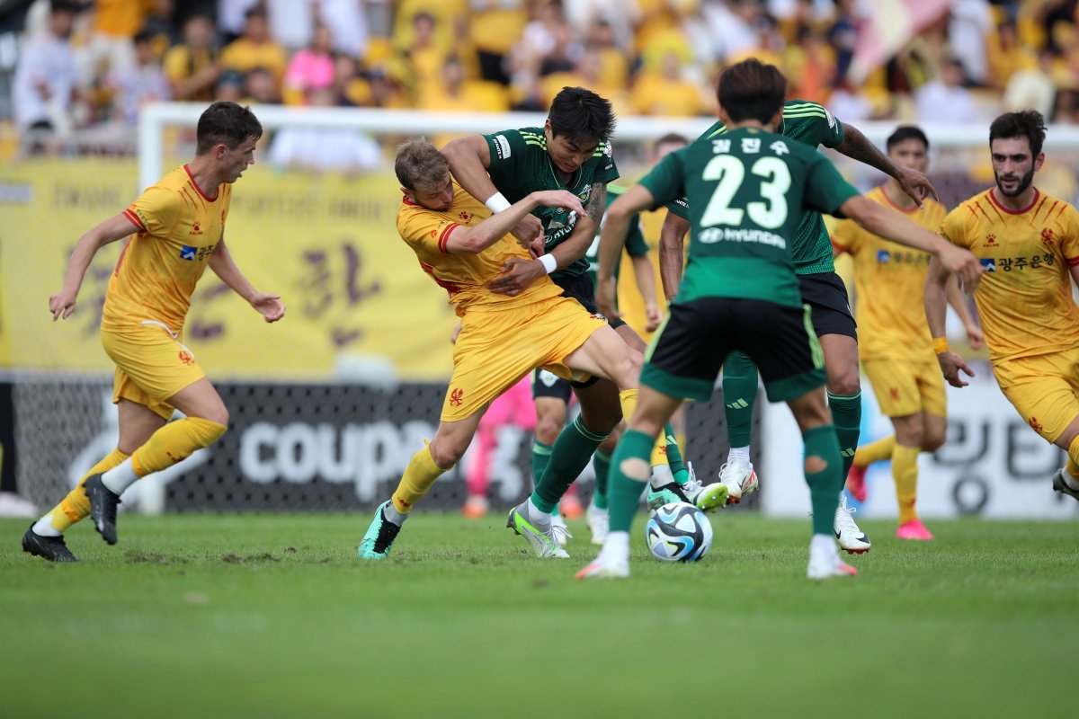 최근 3연승과 함께 10경기 연속무패(5승5무)의 광주가 두려웠던 전북은 90분 내내 가드를 올렸다. 5명도 부족해 6~7명씩 수비에 나섰다. ‘닥공(닥치고 공격)’이란 고유의 팀 컬러는 실종됐다. 전북을 키운 공격축구를 광주가 했다. 볼 점유율 60대40(%)으로 앞선 홈팀은 훨씬 많은 슛(15회·전북 4회)을 시도했다. 이날 승리는 전북이 수비를 잘해서가 아닌, 광주가 운이 지독히 없었던 결과다.