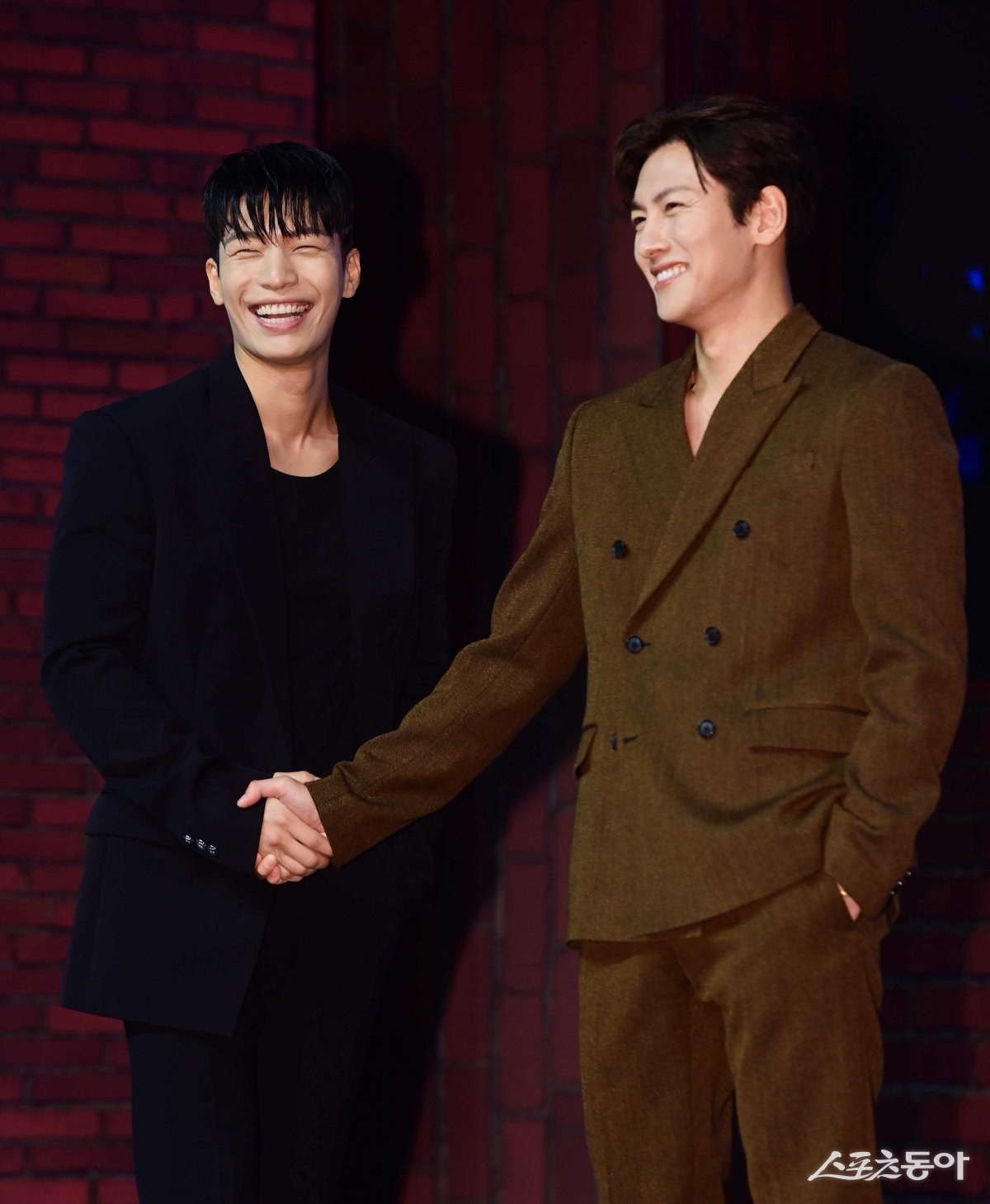 배우 위하준, 지창욱이 26일 서울 강남구 역삼동 조선팰리스 서울강남에서 열린 디즈니플러스 ‘최악의 악’ 제작발표회에서 포즈를 취하고 있다.