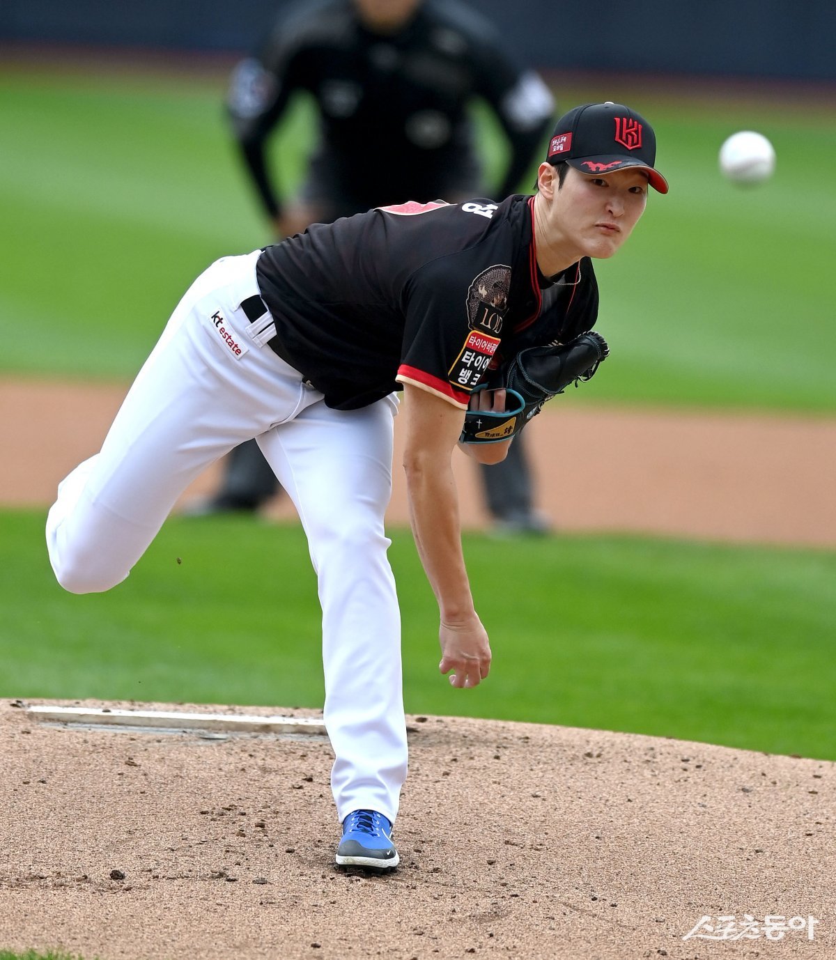 4일 수원 KT위즈파크에서 ‘2023 신한은행 SOL KBO리그’ KIA 타이거즈와 KT 위즈의 더블헤더 1차전 경기가 열렸다. 선발 투수로 등판한 KT 배제성이 역투하고 있다.