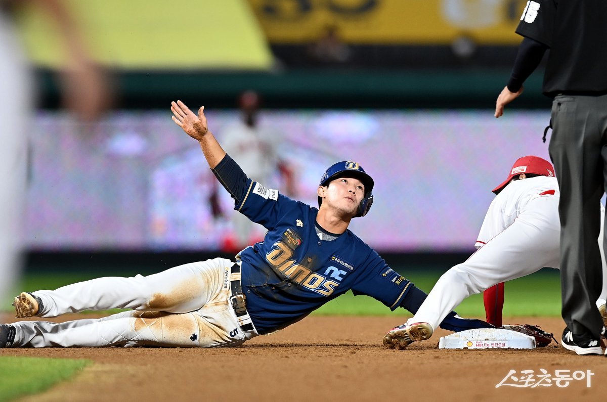 4일 인천 SSG 랜더스필드에서 ‘2023 신한은행 SOL KBO리그’ SSG 랜더스와 NC 다이노스의 경기가 열렸다. 3회초 무사 1, 2루에서 NC 2루 주자 서호철이 견제 아웃되고 있다. SSG가 비디오판독을 요청해 세이프에서 아웃으로 번복됐다.