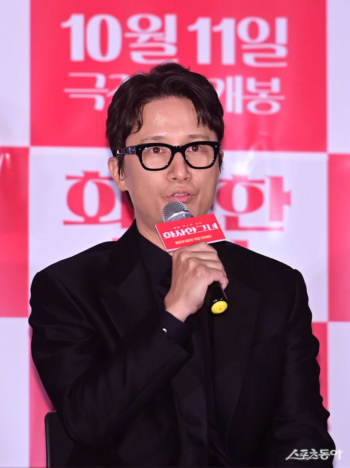 배우 송새벽이 5일 서울 용산구 CGV용산아이파크몰점에서 열린 영화 ‘화사한 그녀’ 언론시사회에서 인사말을 하고 있다.
