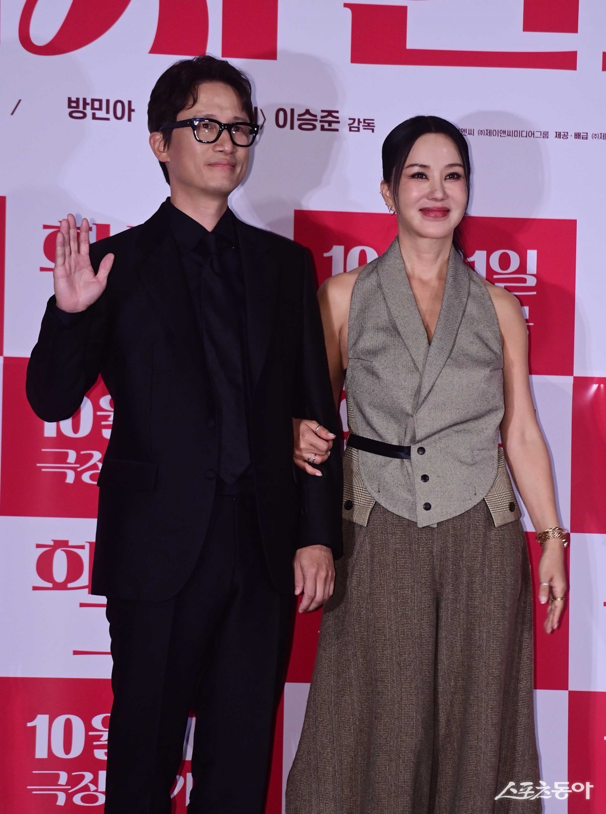 배우 송새벽, 엄정화가 5일 서울 용산구 CGV용산아이파크몰점에서 열린 영화 ‘화사한 그녀’ 언론시사회에서 포즈를 취하고 있다.