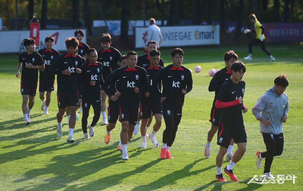 한국축구대표팀이 9일 경기도 파주 축구대표팀트레이닝센터(NFC)에서 친선경기에 앞서 소집훈련을 진행했다. 한국 선수들이 러닝을 하고 있다.