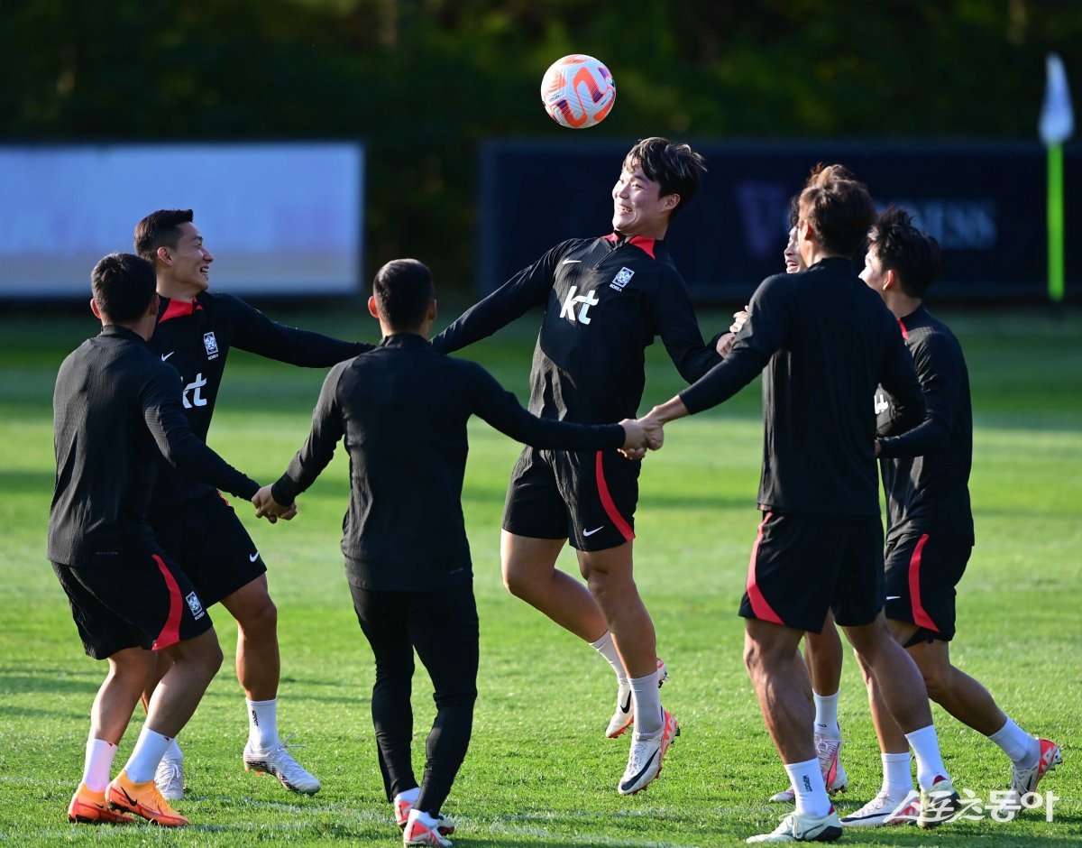 한국축구대표팀이 9일 경기도 파주 축구대표팀트레이닝센터(NFC)에서 친선경기에 앞서 소집훈련을 진행했다. 한국 오현규가 훈련을 하고 있다.